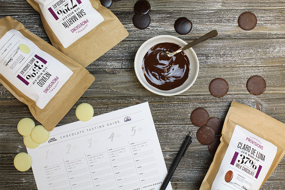 A proper tasting requires all 5 of your senses: what does the chocolate look like? How does it smell? Does it make a delightful snapping sound when you crack it in half? What texture is it when you touch it? And most importantly- what does it TASTE like? Here are some examples and tips of what you should look for: