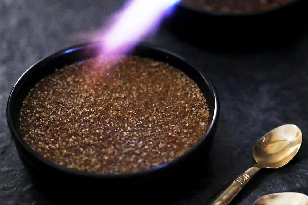 Torch a layer of granulated sugar over top of the room temperature custard for a final touch. The satisfaction of shattering through that sugar crust won't come close to how much you'll enjoy the complex flavors of a Luker Chocolate crème brûlée. Pictured crème brûlée created using Noche 40%.